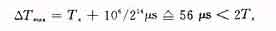 设加法器位数14位,标准时钟周期为Ts,待校时钟ck_time周期为Tx。则周期差:Tx-Ts,由比例因子关系可得: 加法器一个加数:A=(Tx-Ts)/Tx×214另一个加数:B是加法器的和数 例如:Tx=51.42μs,Ts=20μs则A10 011 若定时1 s,则最大可能累计误差为一个周期加上由于计算误差引起的累计误差之和: